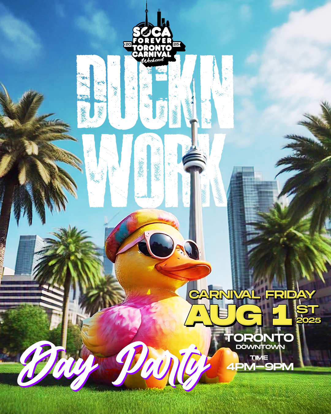 Friday’s for the feters. Duck ‘N Work is straight waistline business—a high-energy daytime fete packed with chunes, outdoor vibes, and nonstop movement. If you love Soca and heat, this is where it’s at. Come outside and catch the madness.